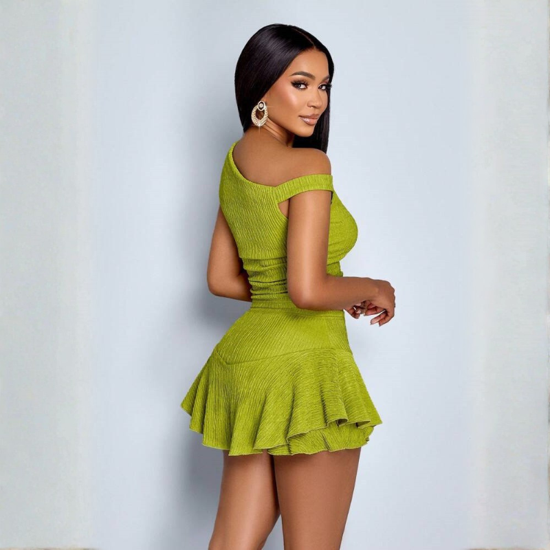 Lo indossi e senti subito l’energia cambiare. Più sicura. Più radiosa. Più protagonista. Il design monospalla valorizza la silhouette con un tocco moderno e raffinato, mentre la mini gonna con balza dona movimento e leggerezza ad ogni passo. Il tessuto morbido e confortevole avvolge delicatamente le forme, esaltandole con naturalezza. Perfetto per una serata speciale, un evento o un’uscita glamour. Con tacchi o sandali minimal, sei pronta a lasciare il segno.