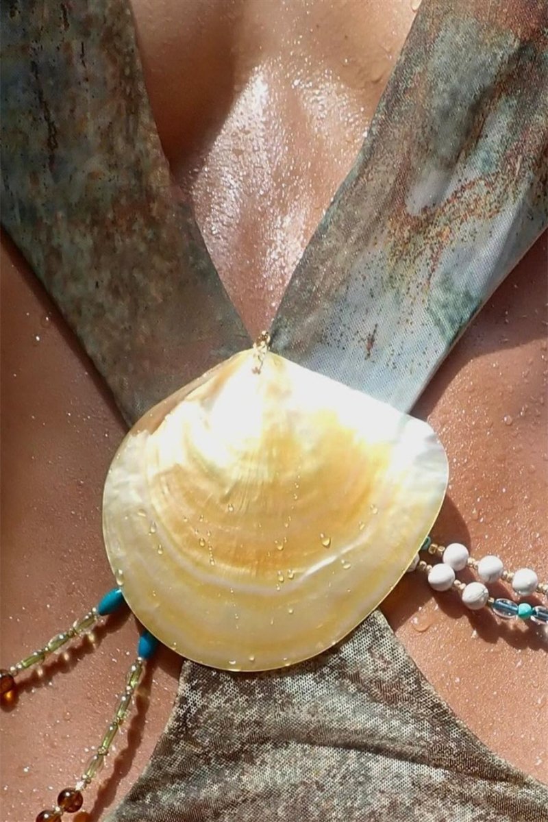 Il Maxi Abito Everest è fatto per momenti che richiedono attenzione. Con la sua vivace stampa in mesh, il profondo scollo a V e il design regolabile con lacci, abbraccia le tue curve nei punti giusti. Completo di bordi a conchiglia staccabili e catene di perline sui fianchi, questo abito porta un'eleganza tribale a feste in spiaggia, cene al tramonto e notti indimenticabili.