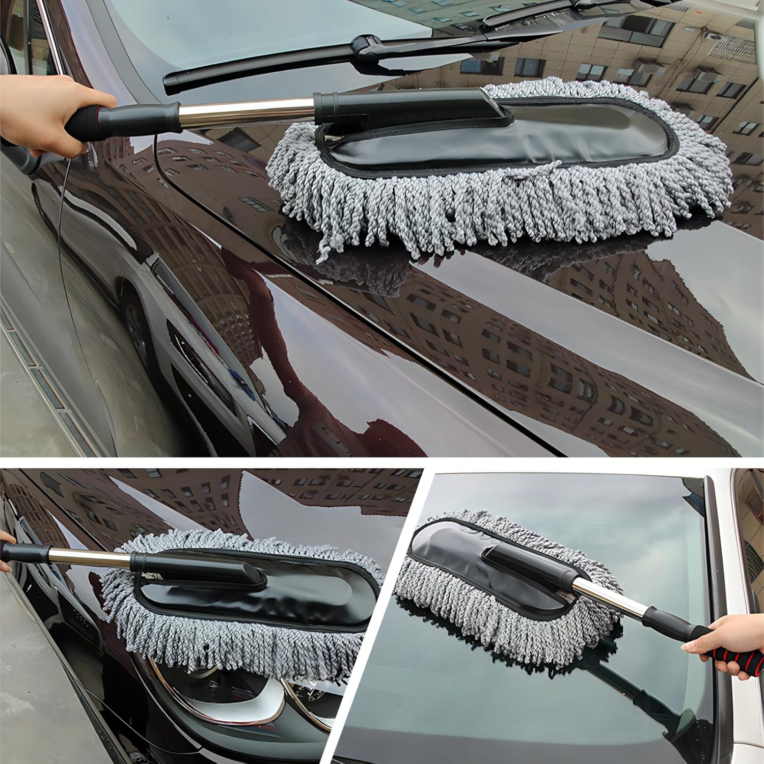 Det tætte mikrofiberhoved fjerner støv, snavs og pollen uden besvær. Med et enkelt strøg ser din bil ud som nyvasket uden besværet med spande eller slanger.