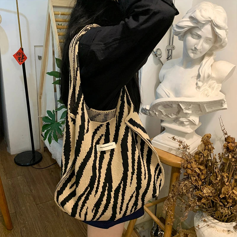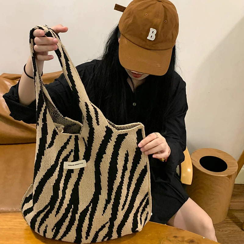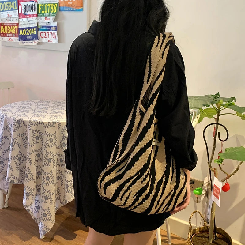 La borsa a spalla con stampa zebrata trasforma il quotidiano in un gesto di stile deciso, elegante, e completamente tuo.