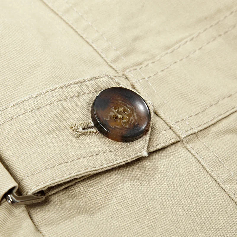 Bottoni solidi, cuciture rinforzate, un colletto che si alza al momento giusto: tutto racconta cura e carattere. È una giacca che non segue la moda — la rappresenta, con sobria eleganza.
