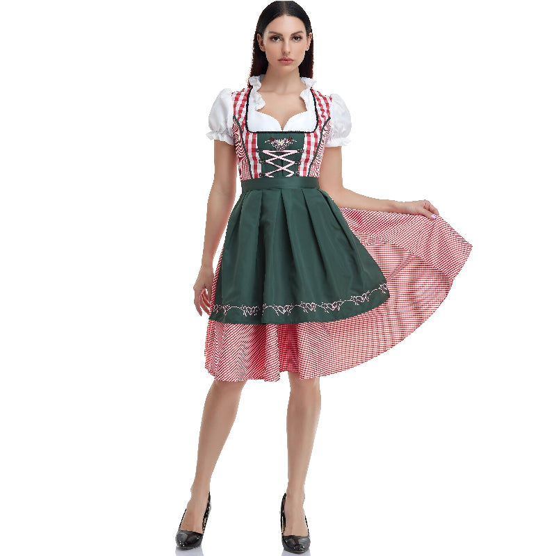 En kedelig dag kan hurtigt forvandles til en fest, når du trækker i denne dirndl. Farverne stråler, pasformen fremhæver figuren, og du mærker den særlige følelse af tradition og glæde, hver gang du binder forklædet.
