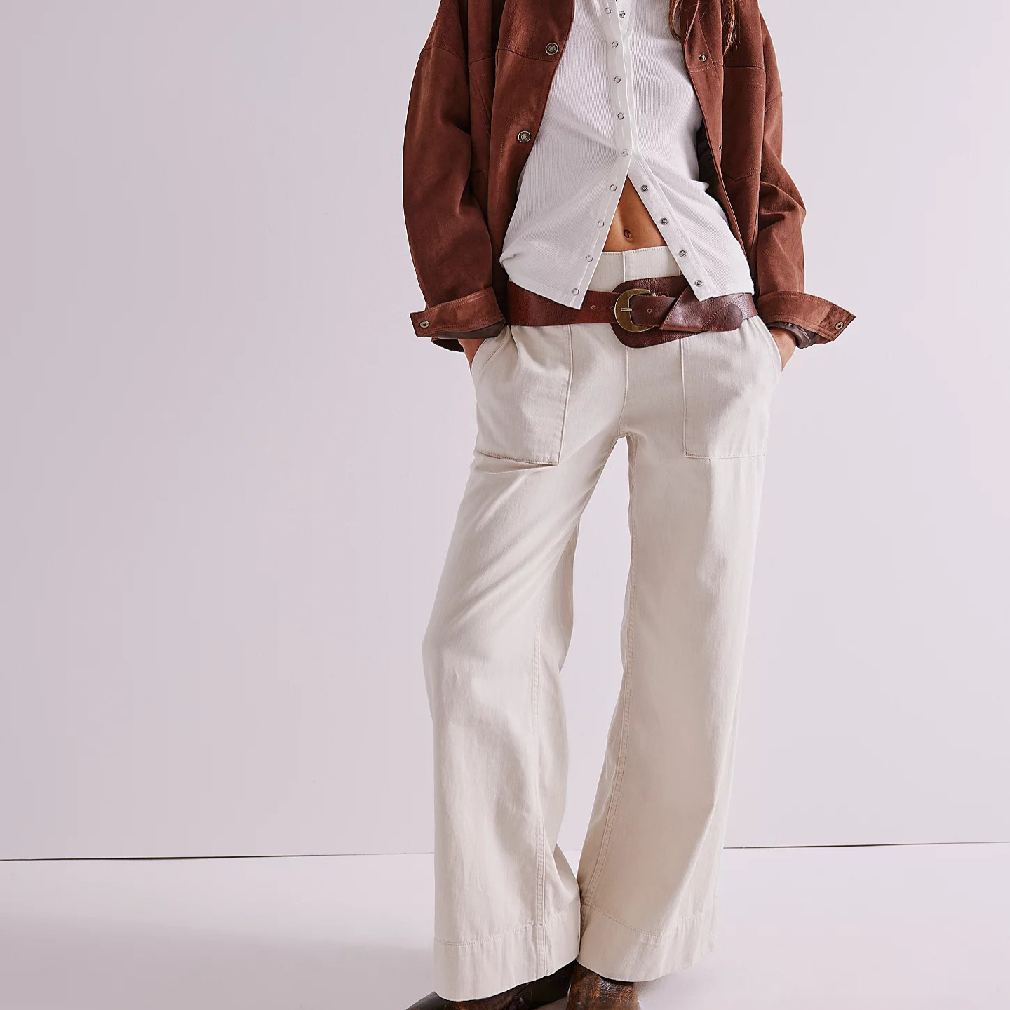 - Gamba ampia con ispirazione boho, fluida e senza costrizioni.