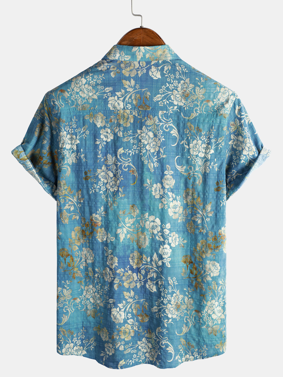 Herren Baumwolle Blaues Kurzarmhemd